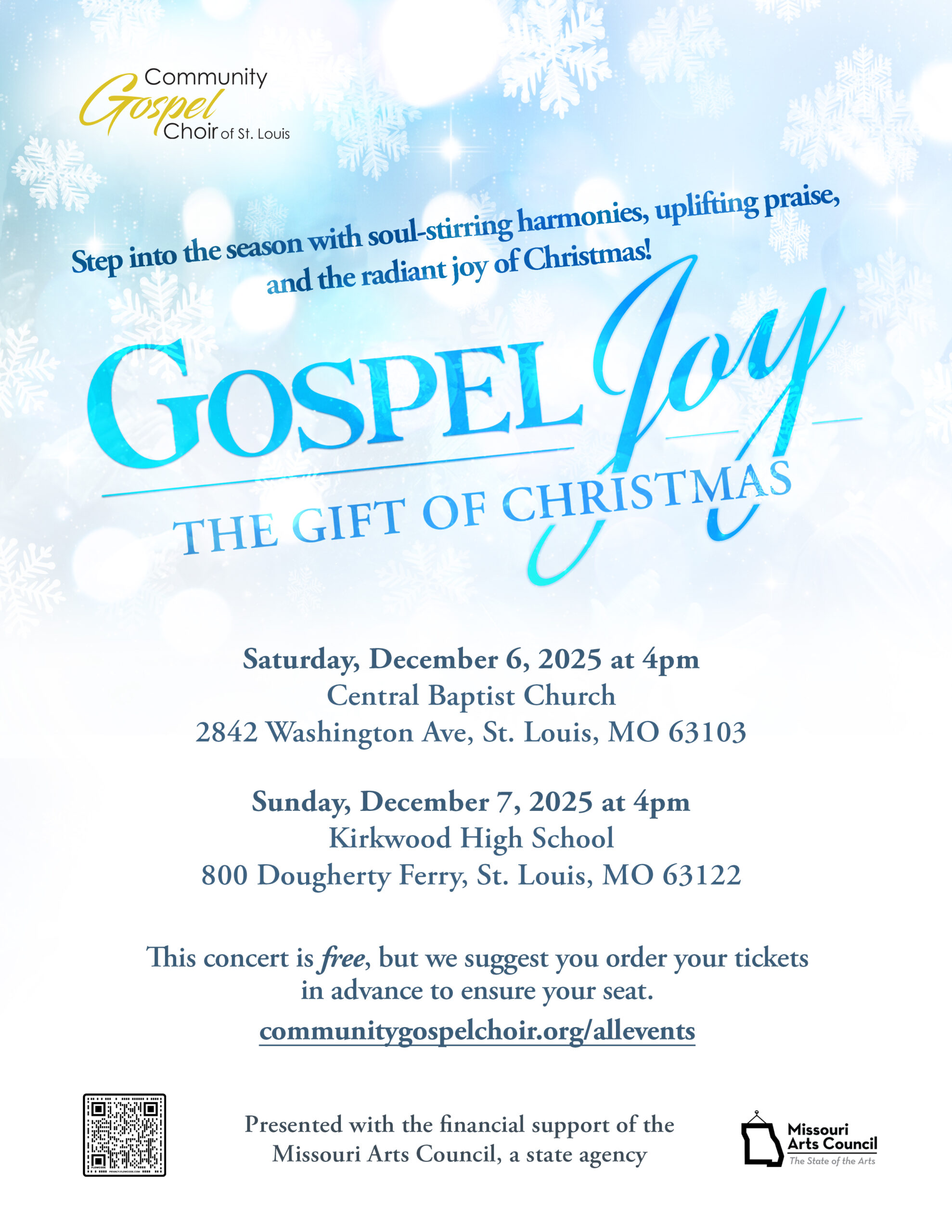 Join us the first weekend in December for Community Gospel Choir of St. Louis’ Christmas concert!